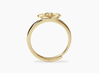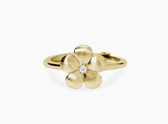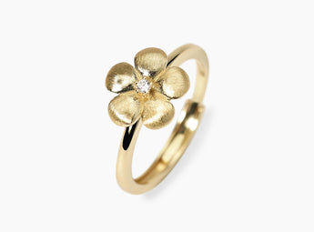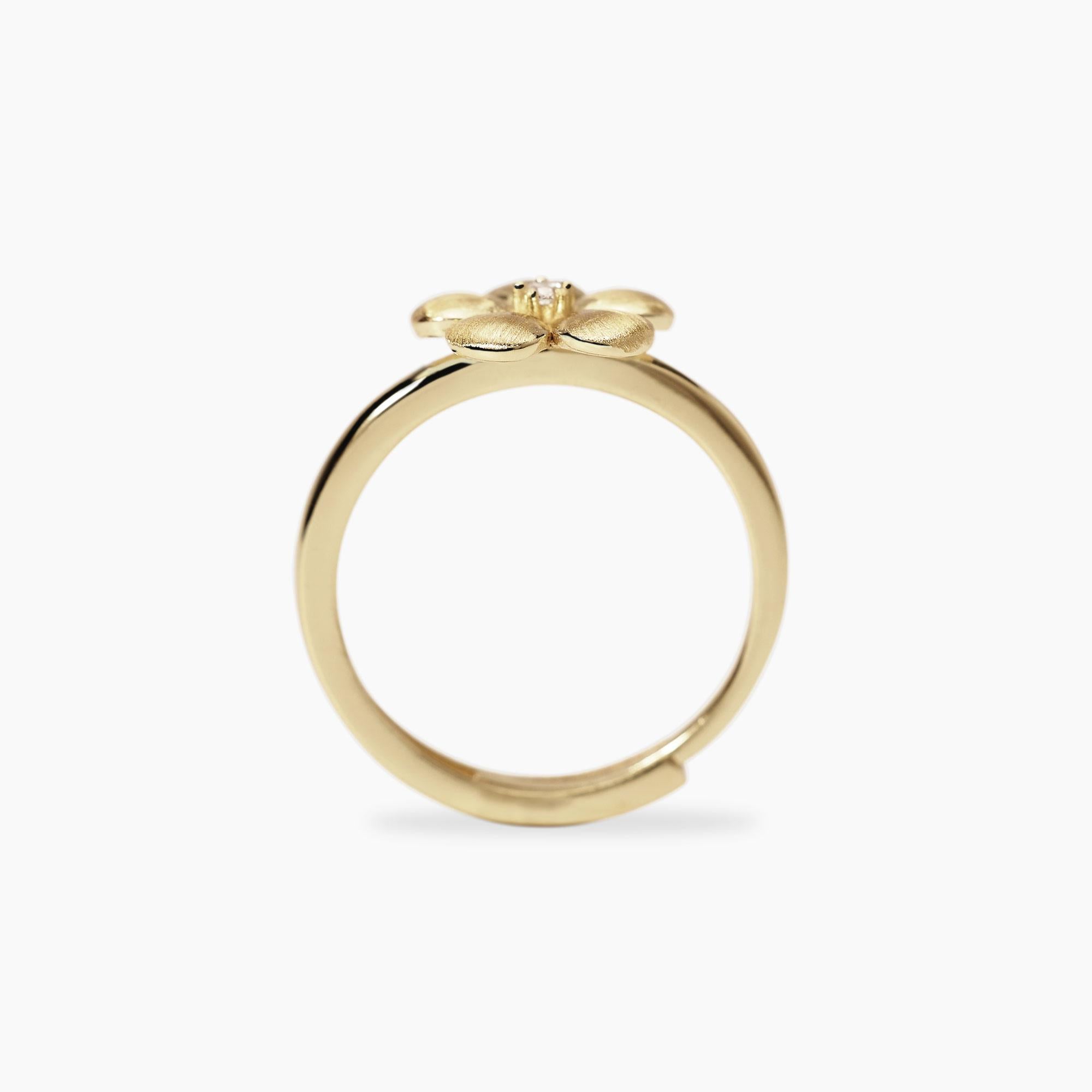 Anello regolabile con fiore in argento bulinato placcato oro 18K e zircone bianco.