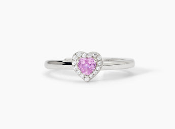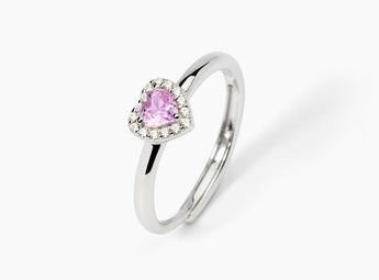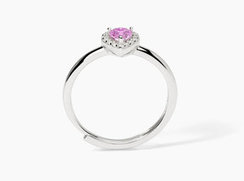 Anello da donna regolabile in argento rodiato con tormalina sintetica taglio cuore e zirconi bianchi.