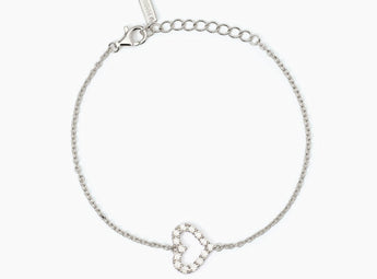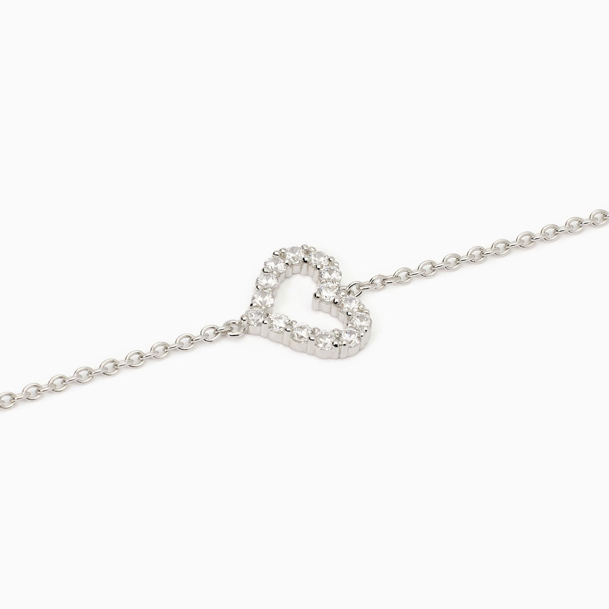 Bracciale regolabile da donna in argento rodiato con catena forzatina e cuore centrale con zirconi.