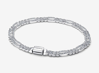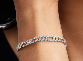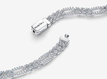 Bracciale Pandora Catena Maglia Cubana Pavè con Ovali Argento Sterling 925
