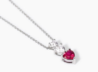 Girocollo con cuori in zirconi e rubino sintetico