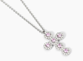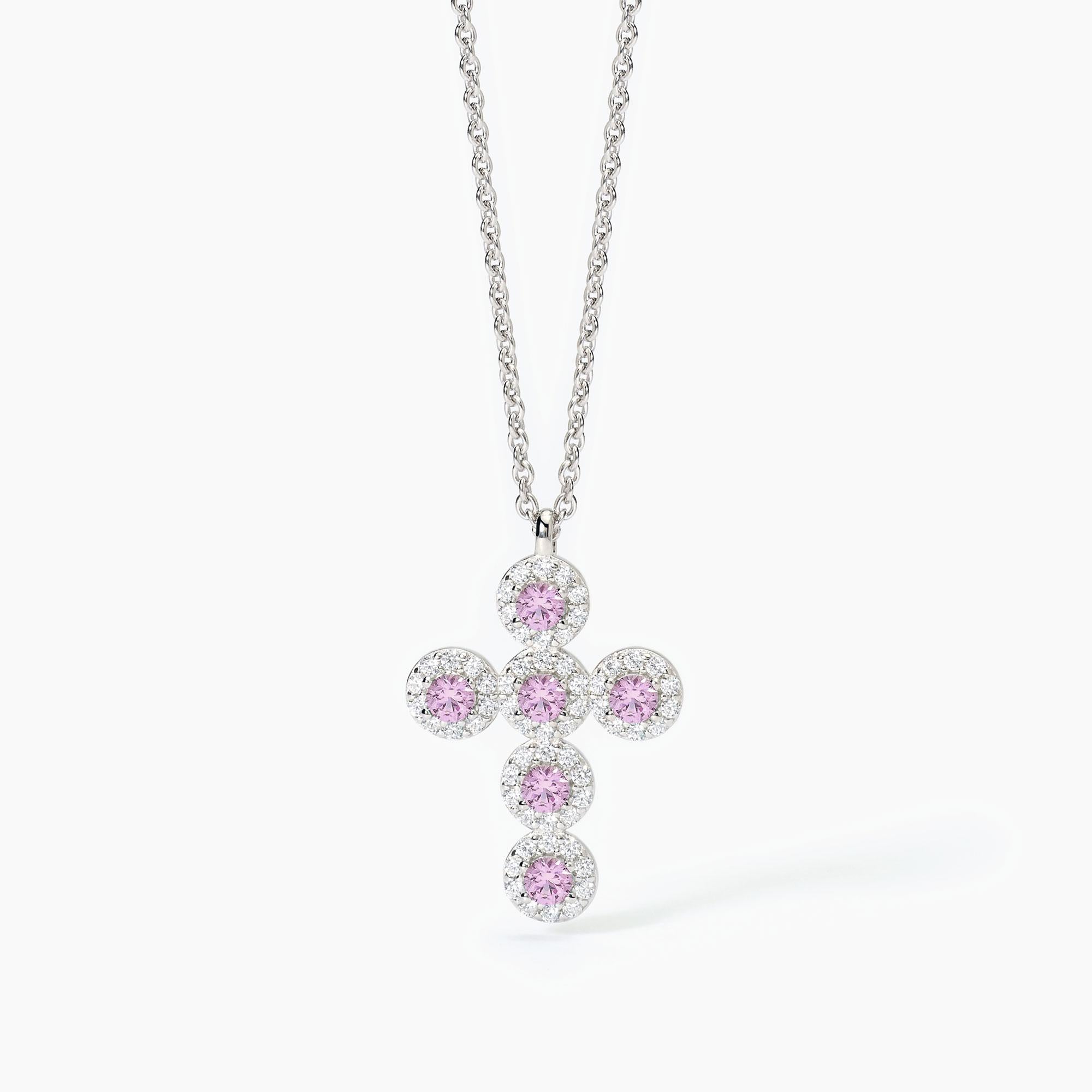 Girocollo in argento con ciondolo croce e tormaline sintetiche