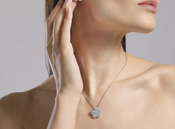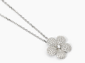 Girocollo in argento con catena forzatina diamantata e ciondolo fiore in zirconi.