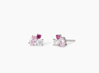 Orecchini a lobo multicolor con glass rosa forma navette, rubini sintetici e zirconi.