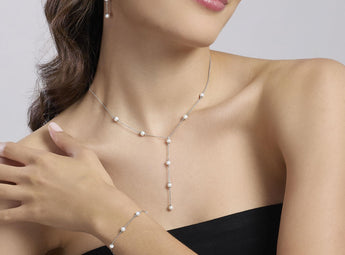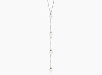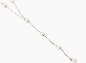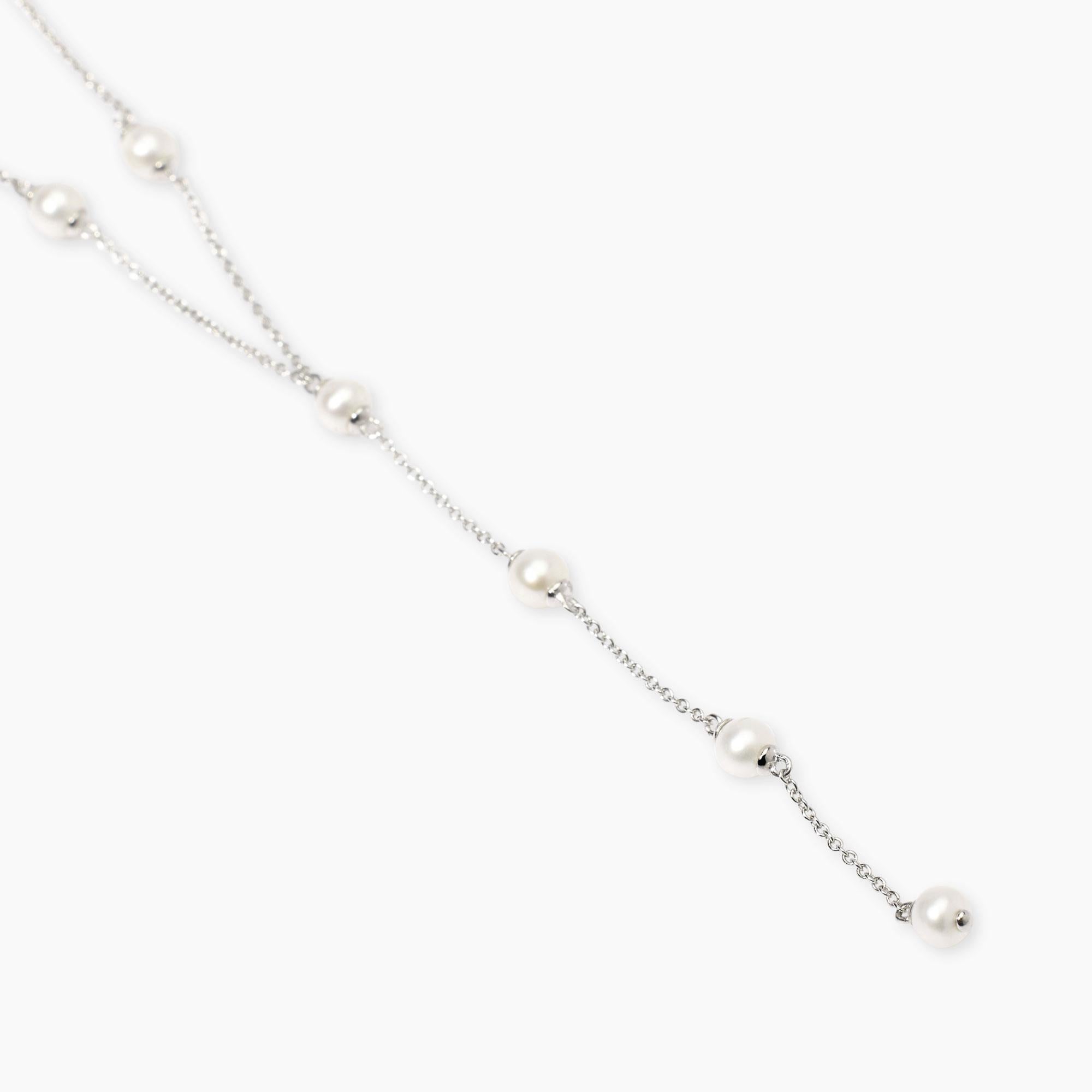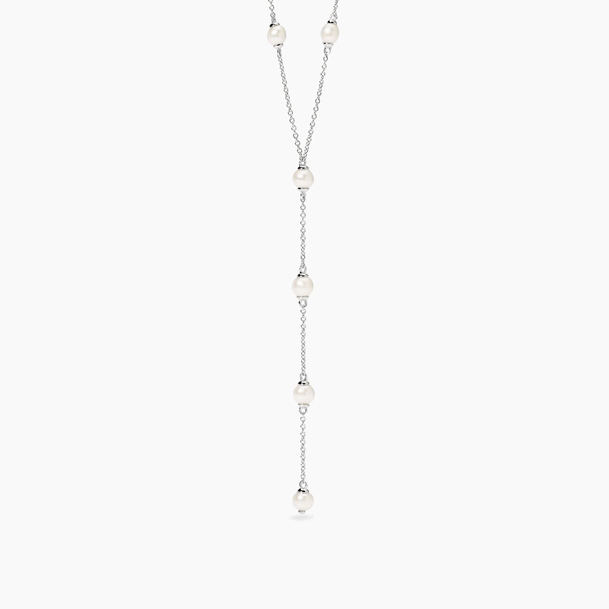 Girocollo regolabile in argento rodiato con catena rolò e pendente con perle coltivate.