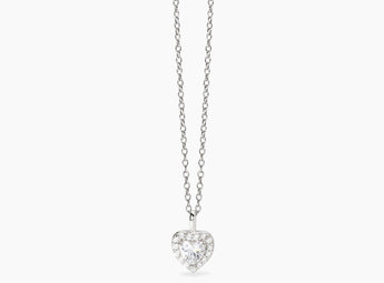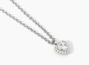Girocollo regolabile da donna in argento rodiato con catena forzatina, ciondolo a forma di cuore con zirconi bianchi.