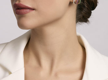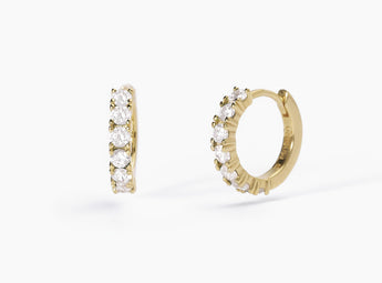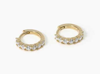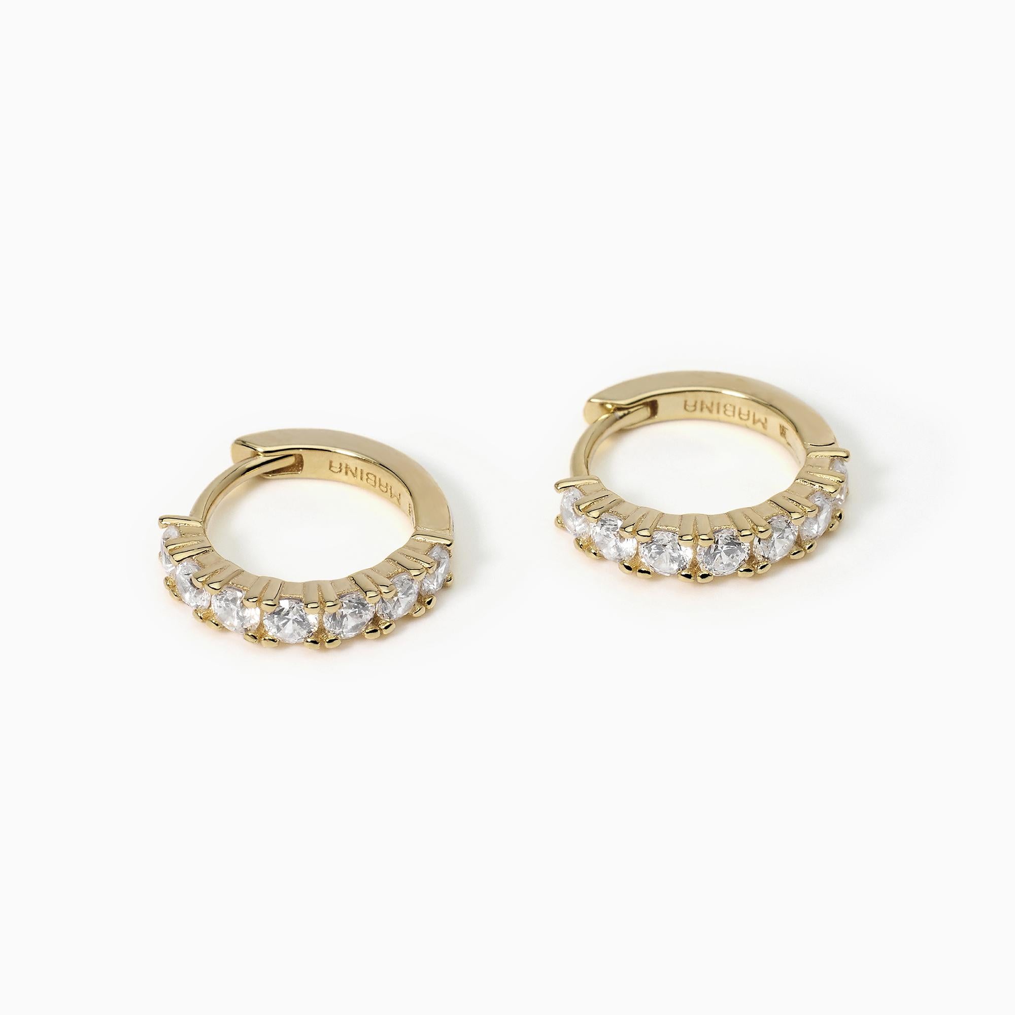Orecchini da donna a cerchio in argento placcato oro 18k con zirconi bianchi.