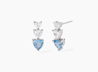 Orecchini con cuori in zirconi e acquamarina sintetica