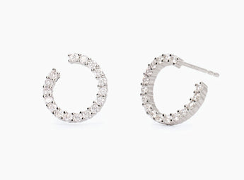 Orecchini a cerchio frontale da donna in argento rodiato con zirconi.