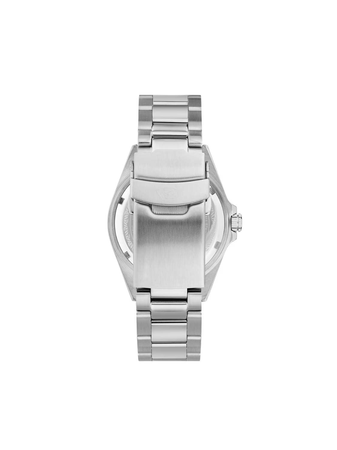 La cassa da 42 mm, proporzionata e confortevole, dona al polso una presenza importante senza rinunciare alla praticità. Al suo interno batte un movimento automatico Swiss Made, che assicura massima precisione e una carica continua alimentata dai gesti quotidiani, simbolo di tradizione orologiera e affidabilità. Le tre sfere con secondi centrali permettono una lettura completa e immediata del tempo.