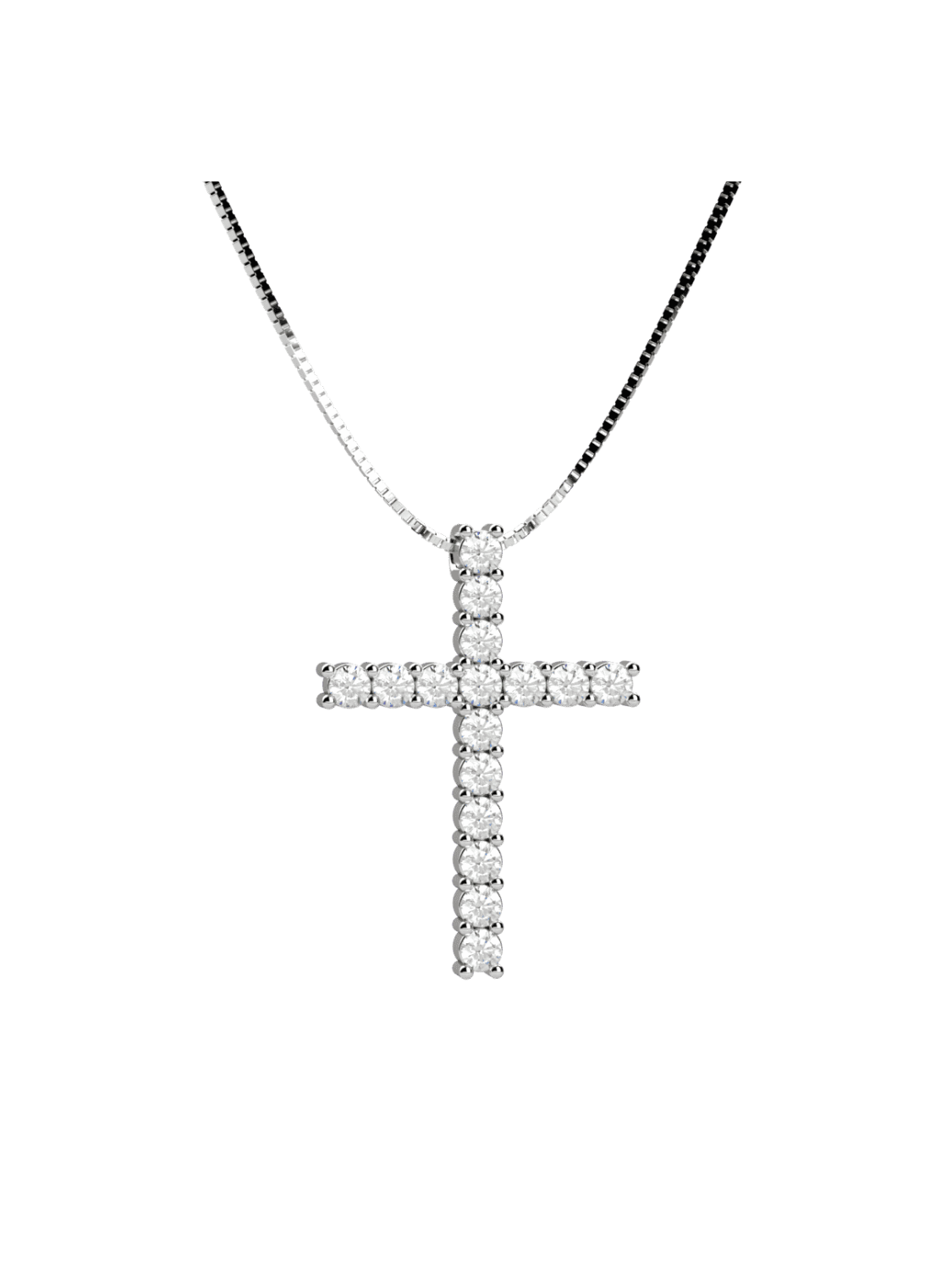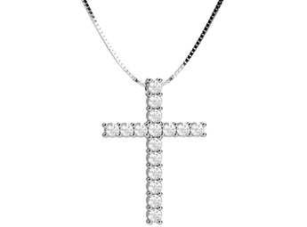 Pendente croce in oro bianco e diamanti. Un simbolo senza tempo per uno stile unico ed elegante.