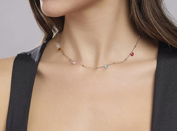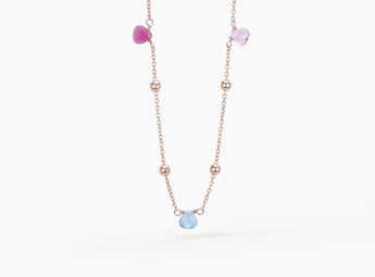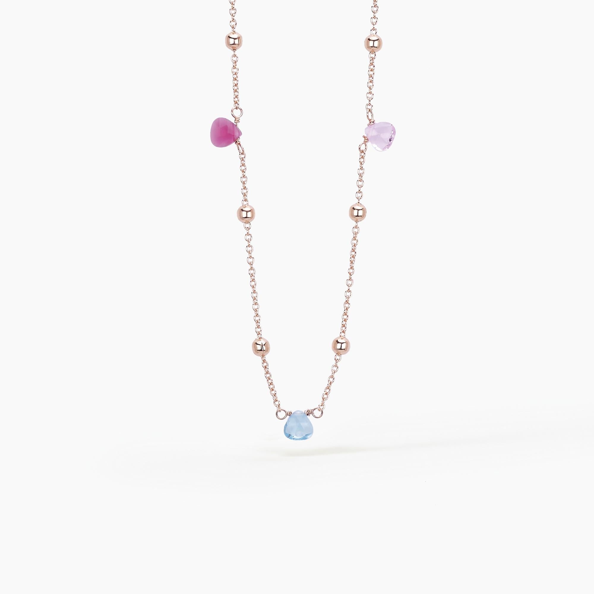 Girocollo corta con sfere in argento placcato oro rosa 18k e glass multicolor a goccia.